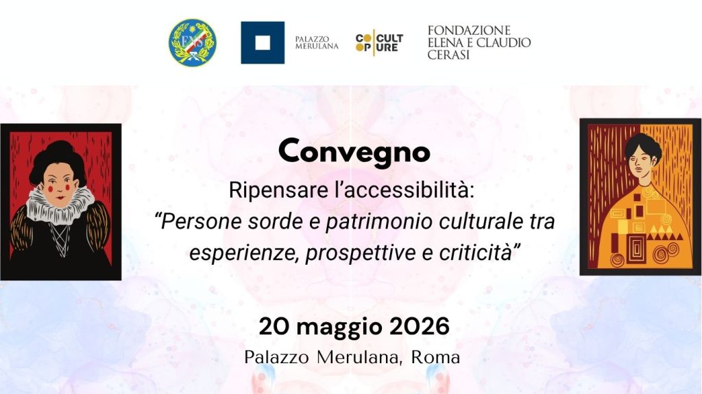 Il 20 maggio a Roma presso il Palazzo Merulana si terrà il convegno “Ripensare l’accessibilità: Persone sorde e patrimonio culturale tra esperienze, prospettive e criticità”, un appuntamento dedicato al confronto sulle politiche e sulle pratiche di accessibilità nel settore culturale.