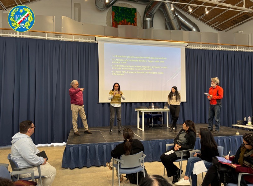 Si è svolto con grande partecipazione il corso di formazione e aggiornamento organizzato dall’Area Formazione dell’Ente Nazionale Sordi (ENS), che ha visto come relatori il Dott. Filipe Sousa e il Dott. Giuseppe Amorini. L’iniziativa rappresenta la seconda parte di un percorso avviato lo scorso anno, guidato in quell’occasione dai relatori Humberto Insolera e Valeria Giura, che avevano introdotto i partecipanti ai principali riferimenti legislativi attuali riguardanti i diritti delle persone sorde. Il proseguimento del corso ha permesso approfondimenti più specifici, creando continuità e consolidando le competenze acquisite.
