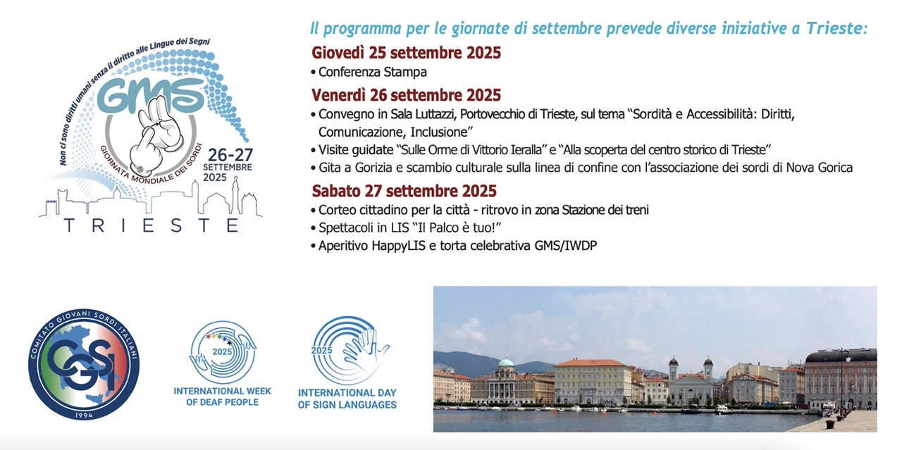 #GMS2025 #LinguaDeiSegni #Accessibilità #Inclusione #Trieste2025 #ComunitàSorda