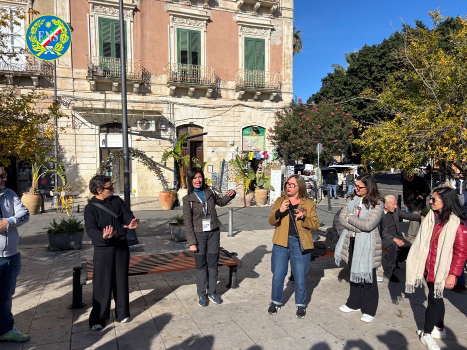 Nell’ambito del percorso formativo nazionale di tre giorni organizzato dall’Area Formazione della Sede Centrale, è stata inserita una visita guidata di quattro ore nel centro storico di Ortigia, svolta come momento introduttivo alle attività di studio dedicate alla legislazione dei sordi, alla LIS come lingua minoritaria e alla revisione del POF.